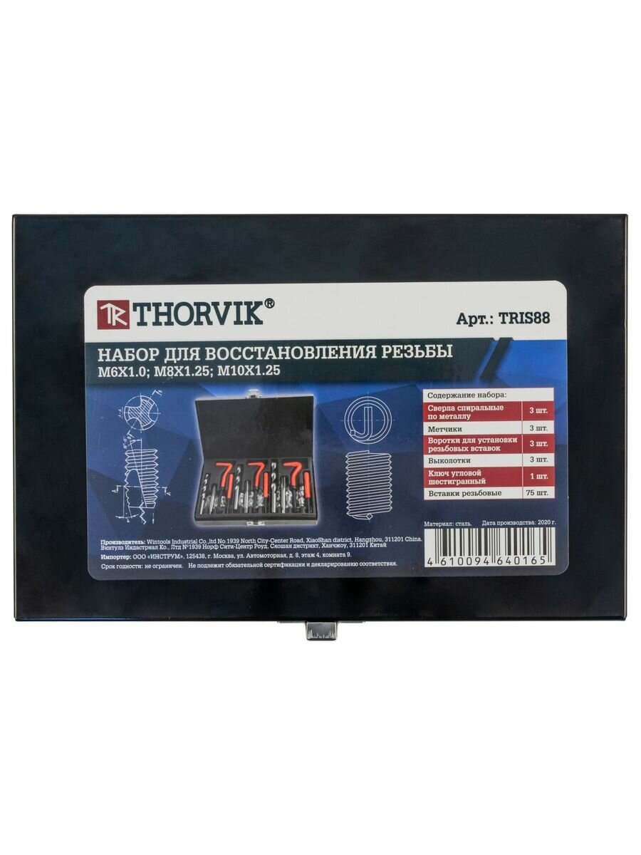 Набор для восстановления резьбы M6-M10, 88 предметов Thorvik TRIS88