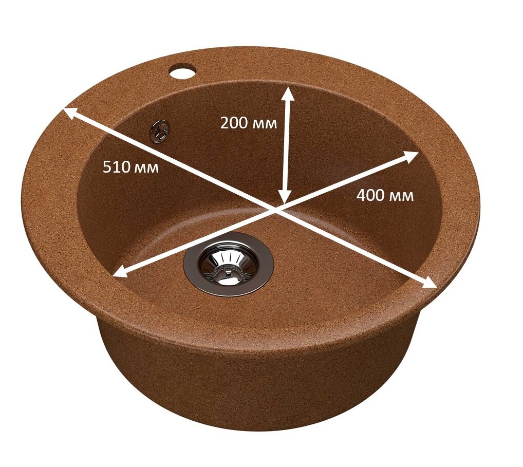 Мойка для кухни врезная каменная Dr. Gans ГАЛА-510, цвет терракот, круглая, 510х510х217 мм