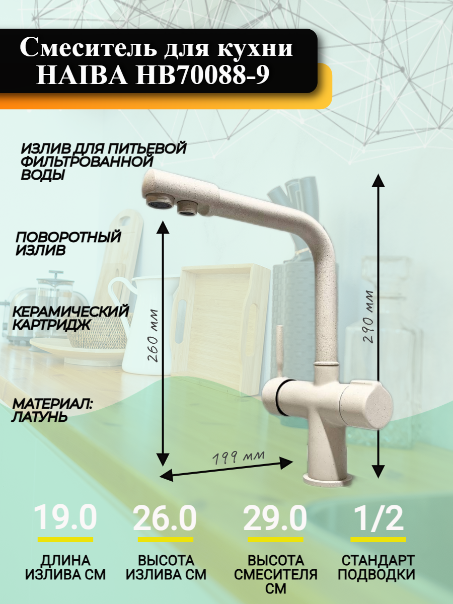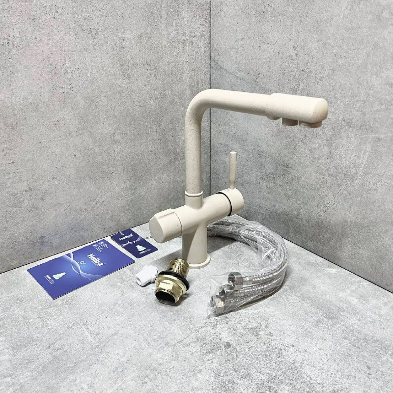 Смеситель для кухни Haiba HB70088-9 с подключением фильтра питьевой воды, бежевый