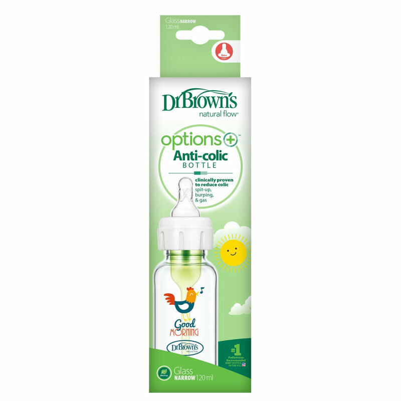 Бутылочка антиколик Dr. Brown's с узким горлышком, Петушок, стекло, 120 мл