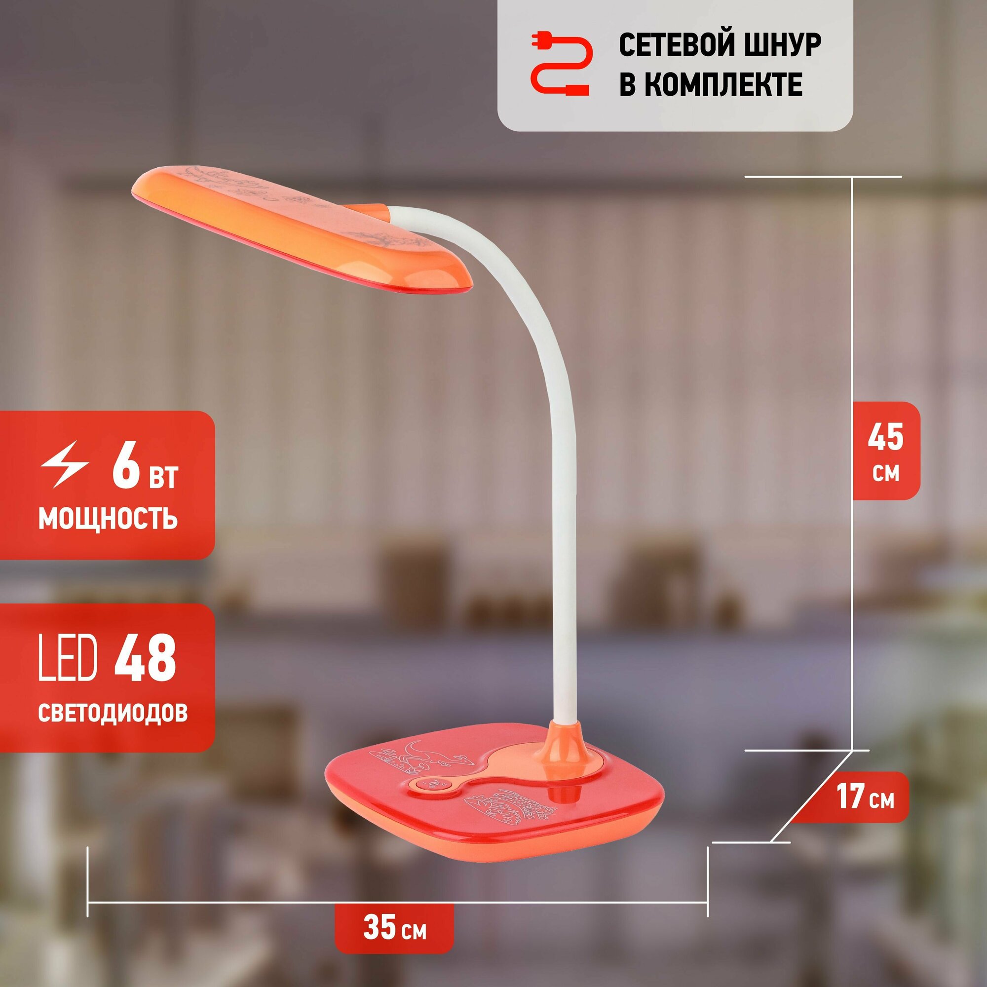 Настольная лампа детская светодиодная ЭРА NLED-432-6W-OR Фиксики