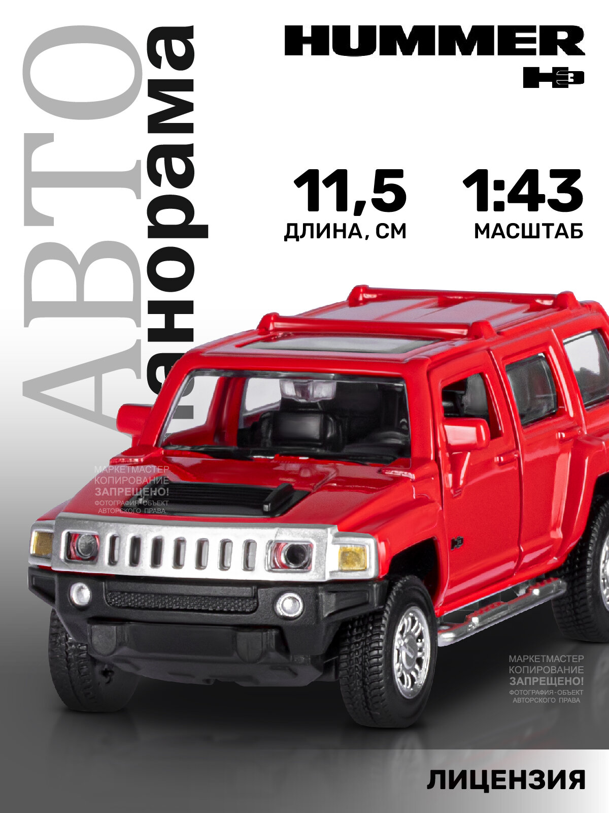 ТМ "Автопанорама" Машинка металлическая 1:43 Hummer H3, красный, откр. двери, инерция, в/к 17,5*12,5*6,5 см JB1251269