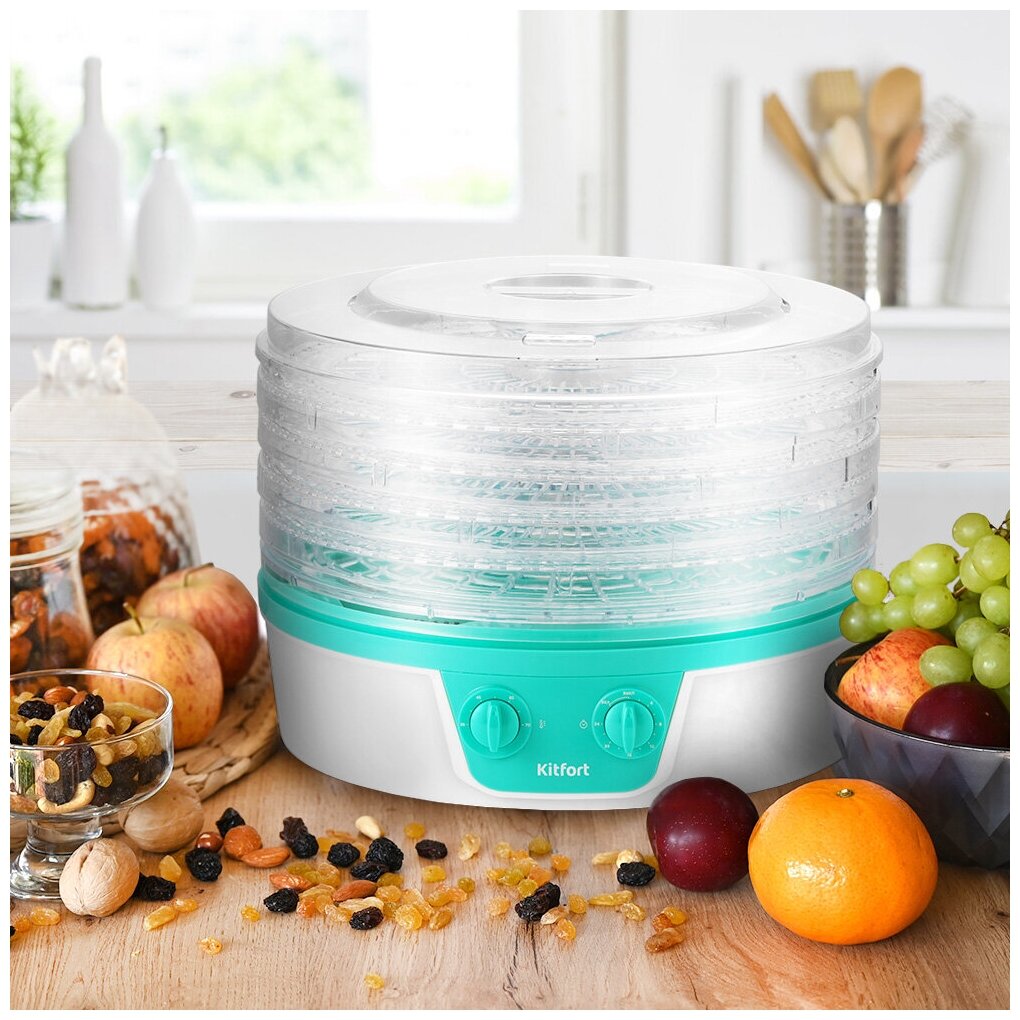 Сушилка для овощей и фруктов Kitfort KT-1935-3 бело-бирюзовая