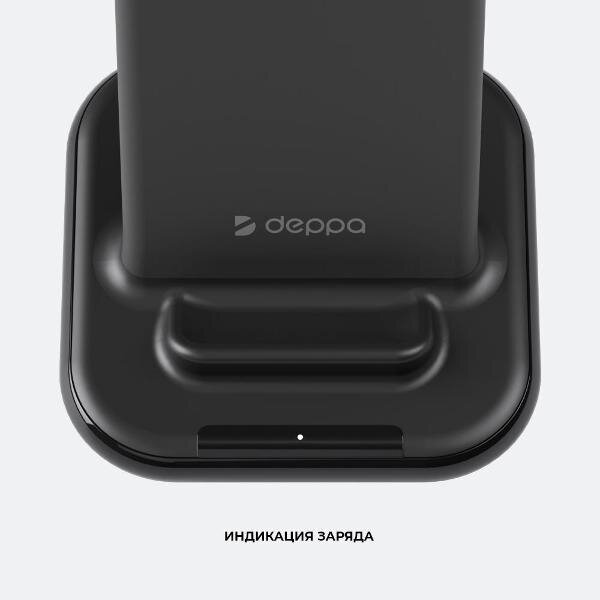 Беспроводная зарядка 15Вт QI Fast Charge черный Deppa/быстрый заряд и подставка под телефон в любом положении/для iPhone айфон /для самсунг