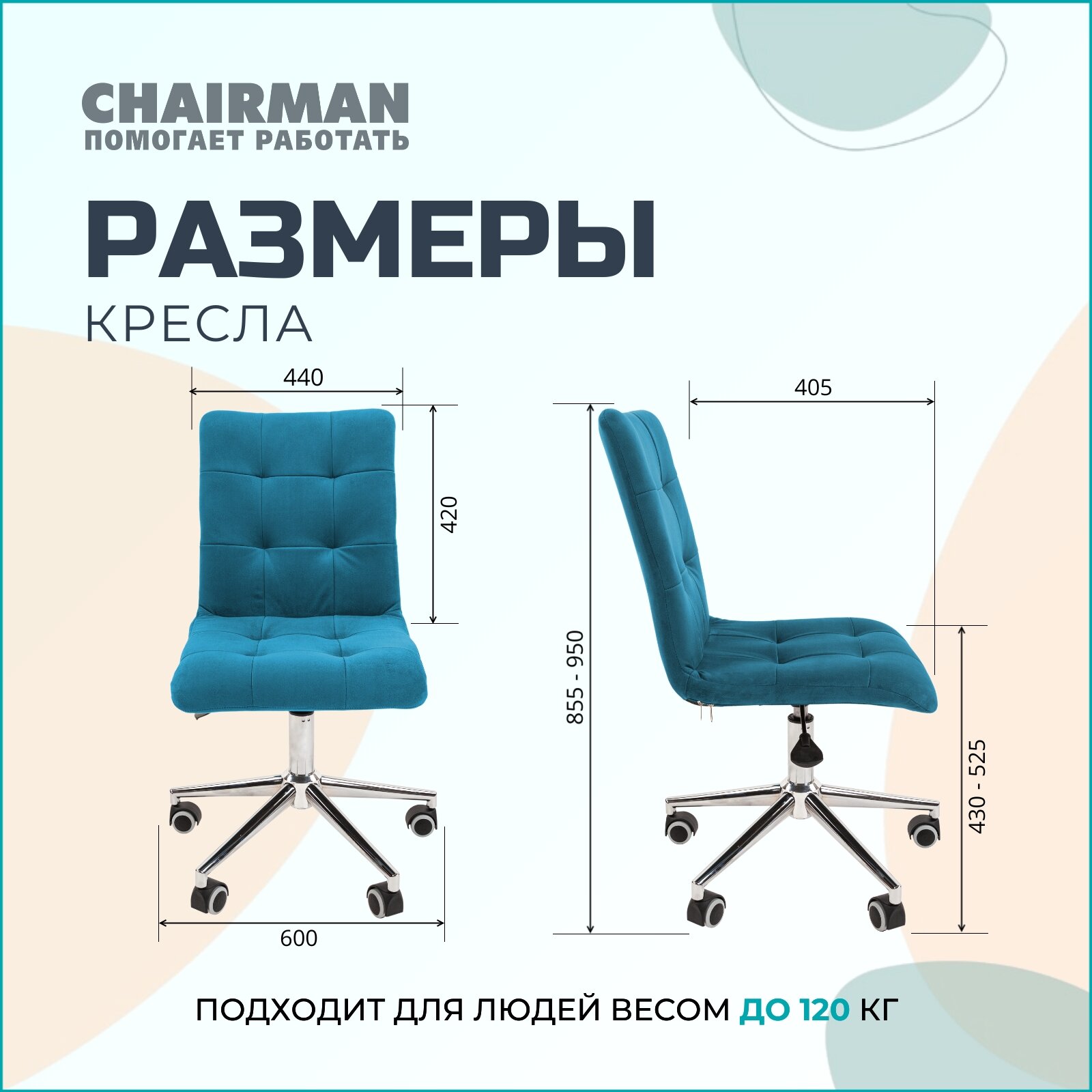 Ниже Вы можете прочитать отзывы на Компьютерное кресло CHAIRMAN 030 хром, без подлокотников, велюр, бирюзовый, ознакомится с подробными характеристиками, посмотреть интересные обзоры и фотографии на Компьютерное кресло CHAIRMAN 030 хром, без подлокотников, велюр, бирюзовый.