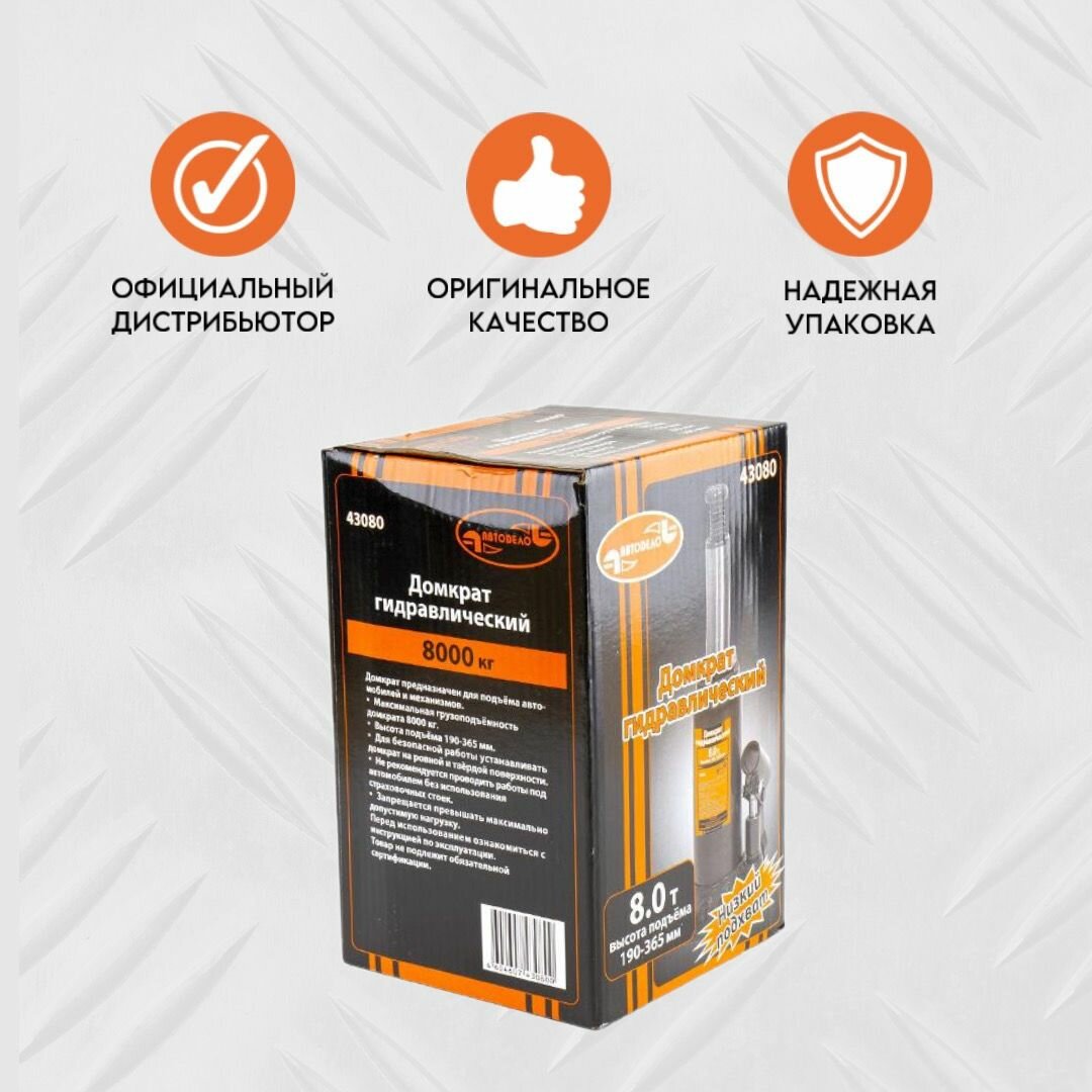 Домкрат Гидр. 8.0Т, 190-365 Мм Автоdело 43080 АвтоDело арт. 43080