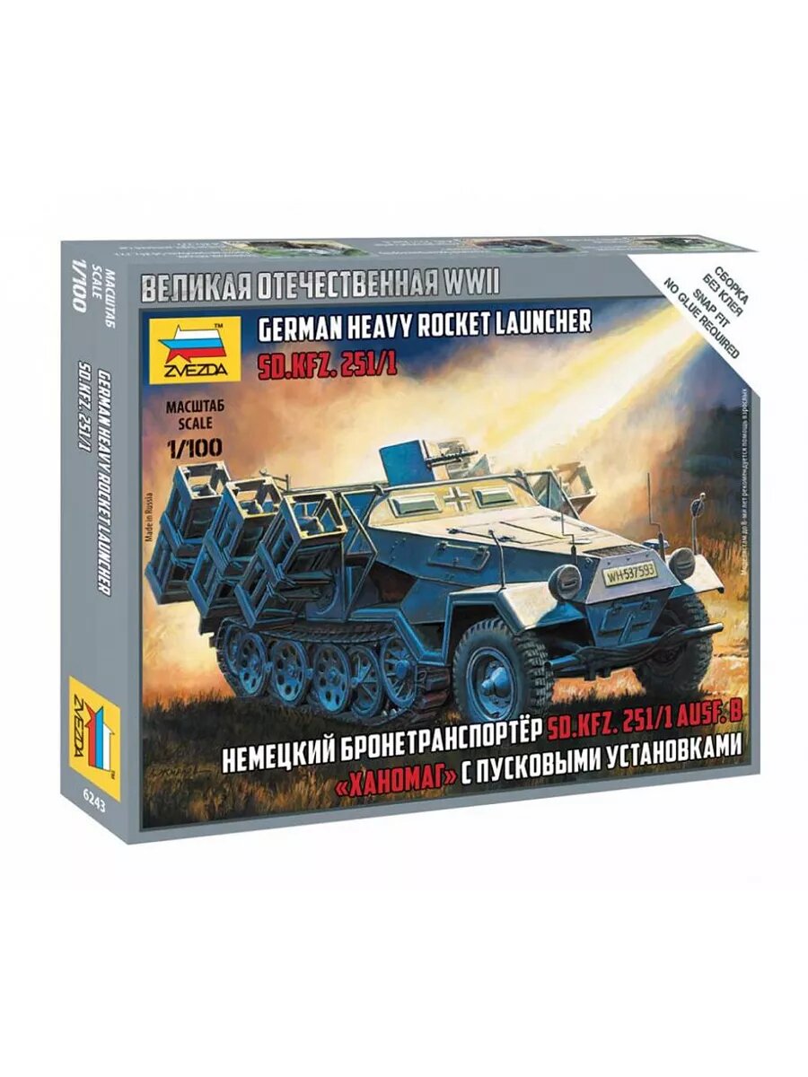 Купить Сборная модель Звезда Немецкий бронетранспортер Sd.Kfz. 251/1 ausf. B Ханомаг с пусковыми установками, 1/100 6243