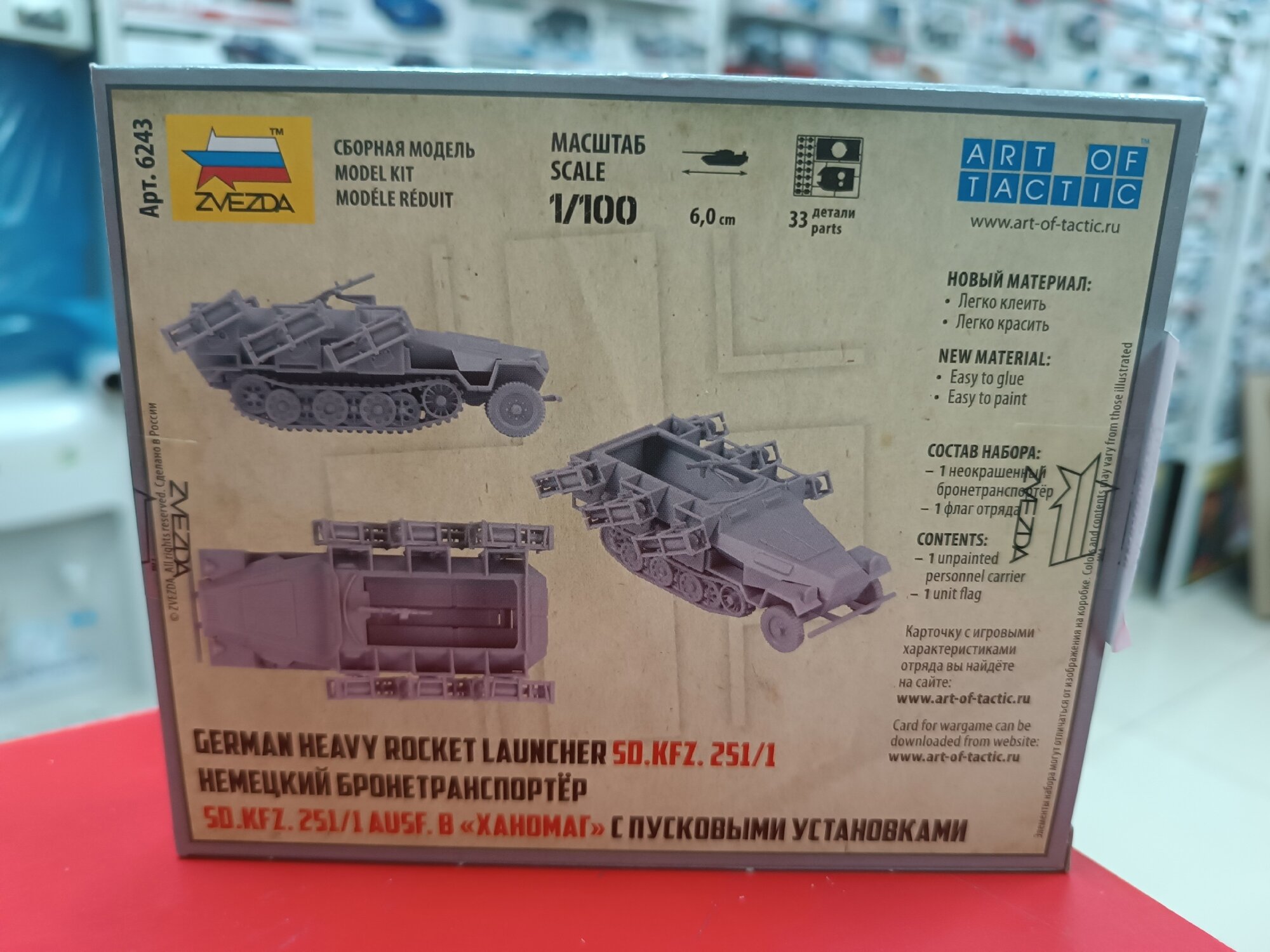 СохранитьСборная модель Звезда Немецкий бронетранспортер Sd.Kfz. 251/1 ausf. B Ханомаг с пусковыми установками, 1/100 6243 интересное: