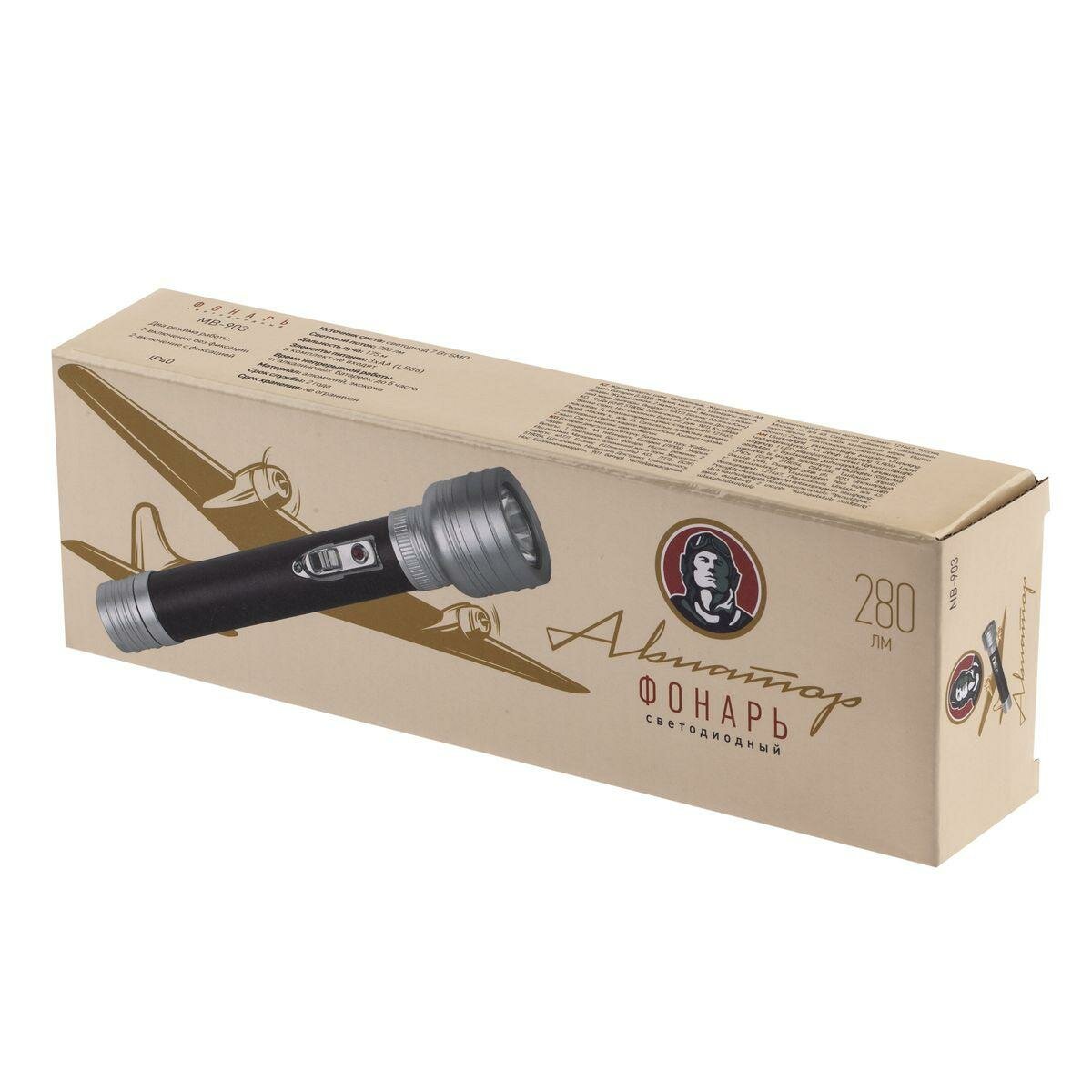 Эра Б0046380 Светодиодный фонарь MB-903 Авиатор ручной на батарейках 3 Вт в подарочной упаковке