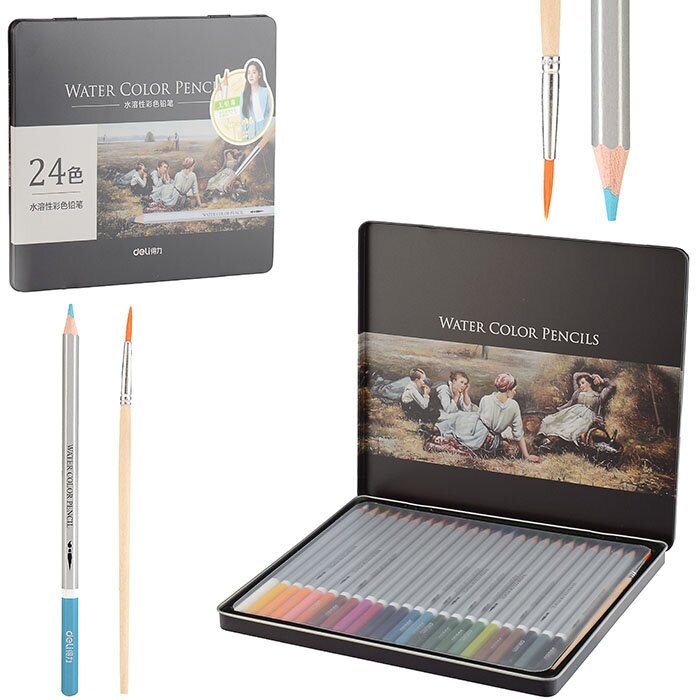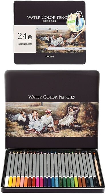 Карандаши акварельные Deli липа 24 цв/наб мет.кор. 6521