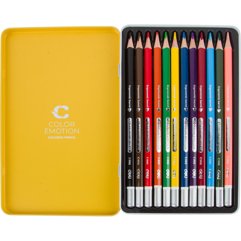 Карандаши Deli Color Emotion EC00205 EC00205, липа, 12 цв., коробка металлическая
