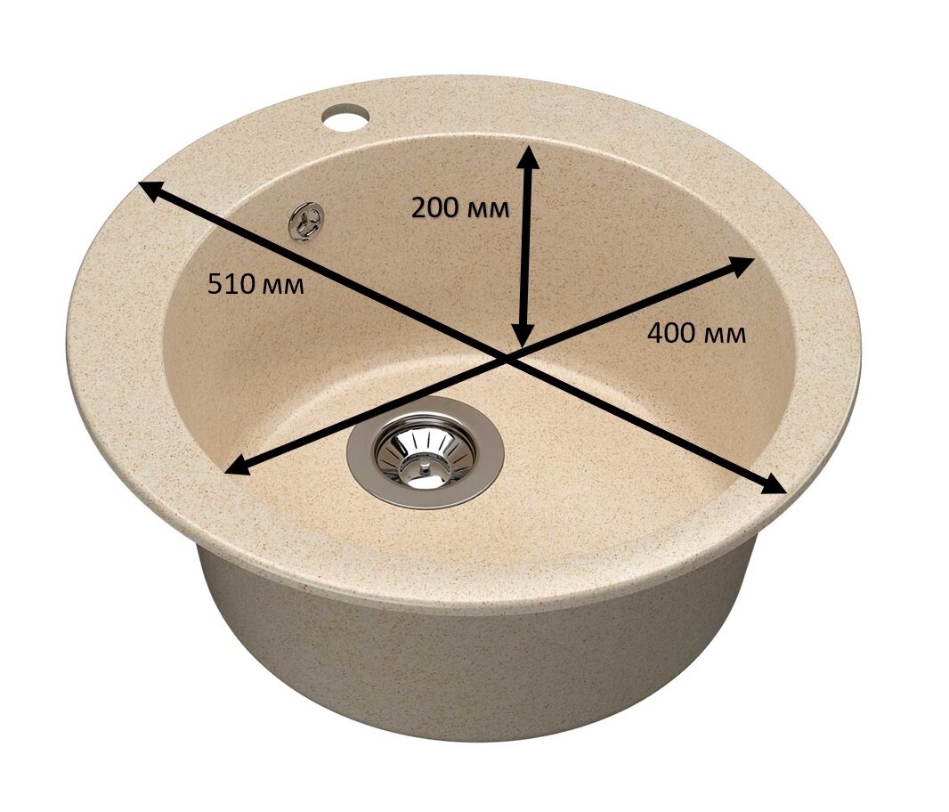 Мойка для кухни врезная каменная Dr. Gans ГАЛА-510, цвет дюна, круглая, 510х510х217 мм
