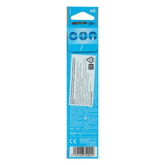 Карандаши цветные 6 цветов Maped Color'Peps (L=175мм, D=7мм, d=2.9мм, 3гр) картонная упаковка (832002)