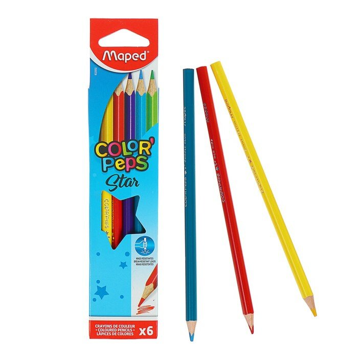 Карандаши цветные Maped COLOR'PEPS STAR,трехгранные,дерево,6 цв/наб,832002