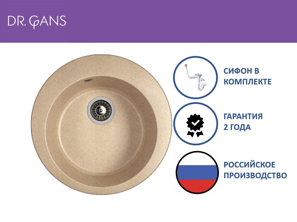Мойка для кухни врезная каменная Dr. Gans ГАЛА-510, цвет дюна, круглая, 510х510х217 мм