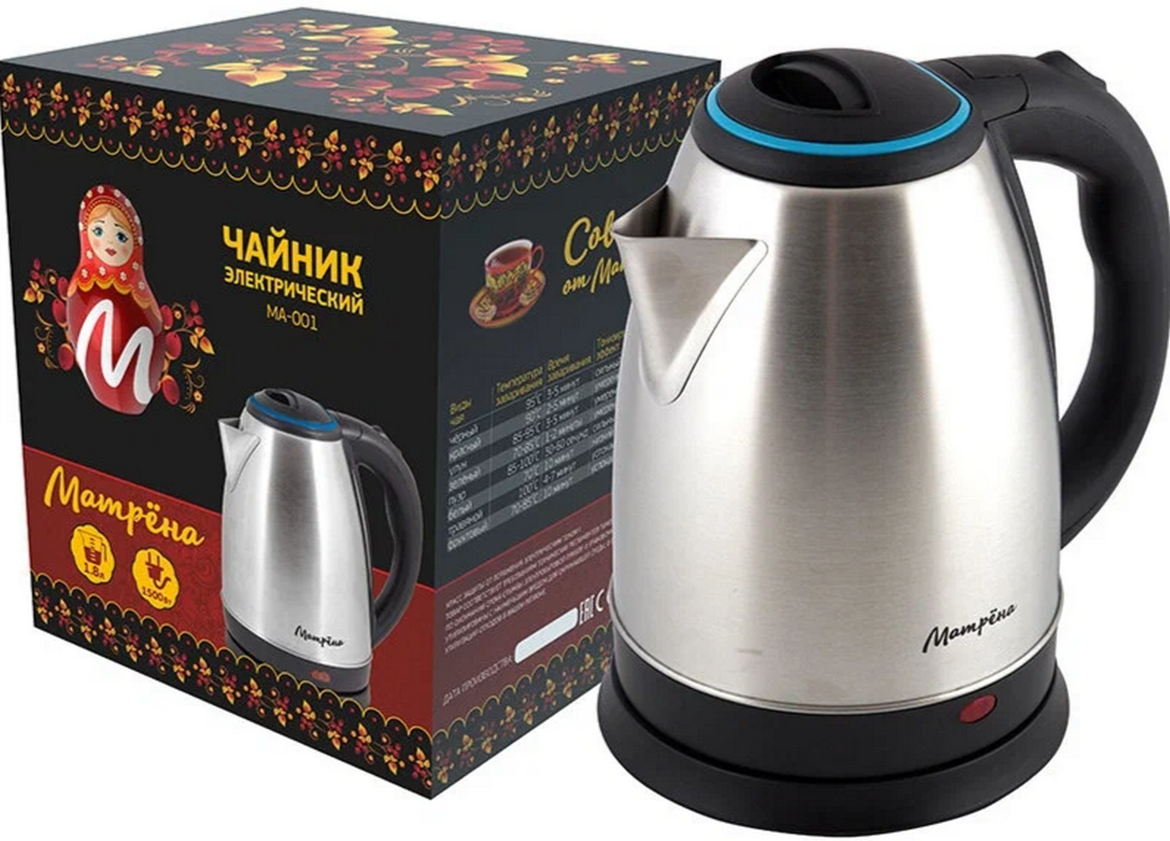 Матрена МА-001 чайник электрический дисковый, 1.8л, 1500Вт, нержавеющая сталь (005456)