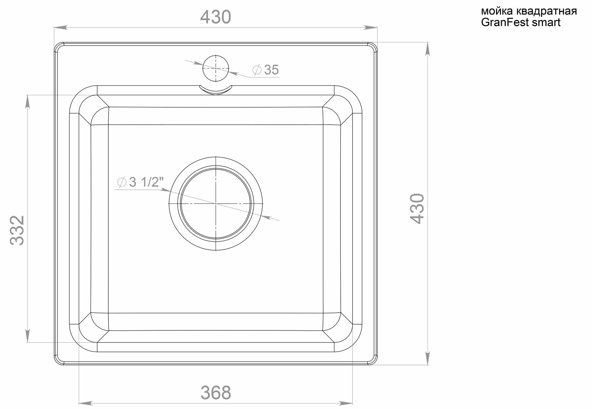 GRANFEST Мойка SMART 430 1-чаша 432*432мм песочный арт. GF-SM-