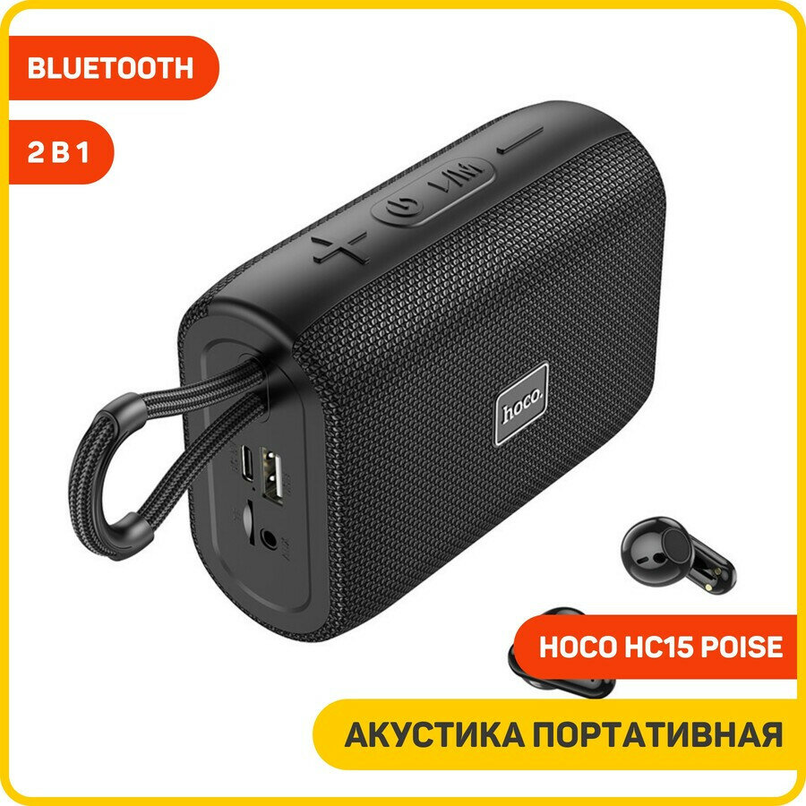 Акустика портативная (Bluetooth) Hoco HC15 Poise (2 в 1) + наушники, черный интересное: