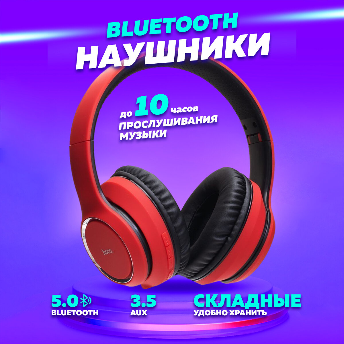 Наушники W28, HOCO, беспроводные, красные, арт.55013072 интересное: