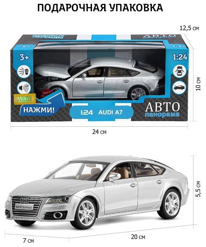 Машинка металлическая 1:24 Audi A7, серебряный - Автопанорама [JB1251020]