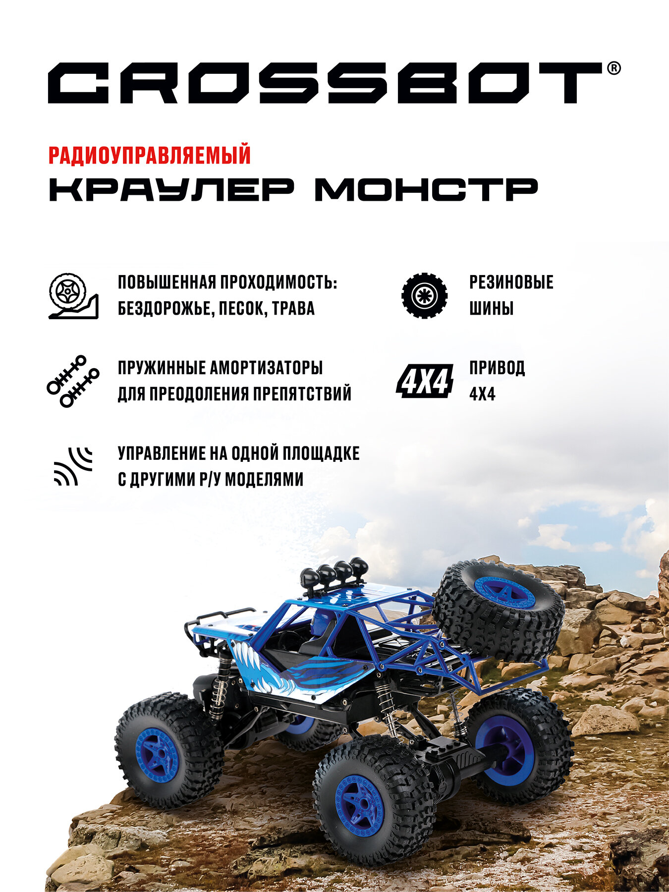 Машинка на радиоуправлении CROSSBOT Краулер Монстр 4WD