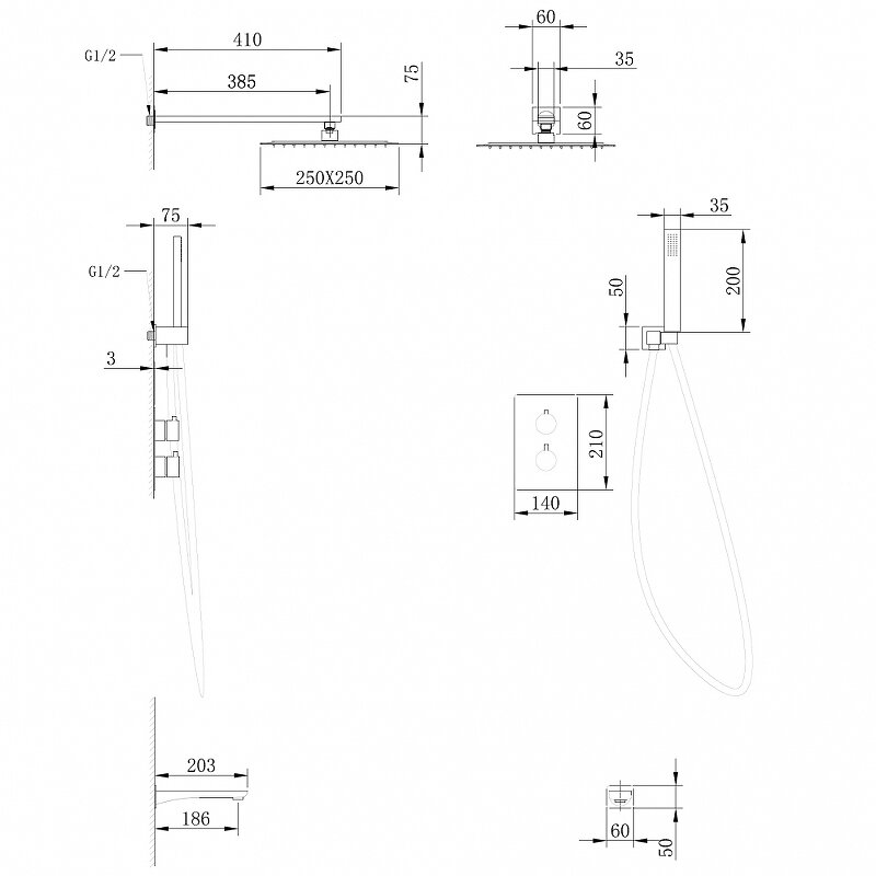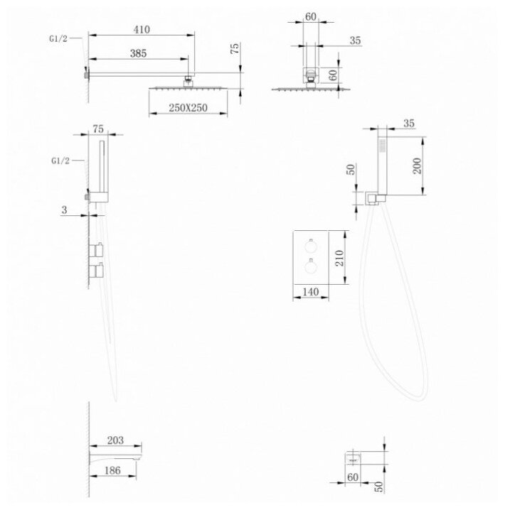 | Форма верхнего душа | квадратная |