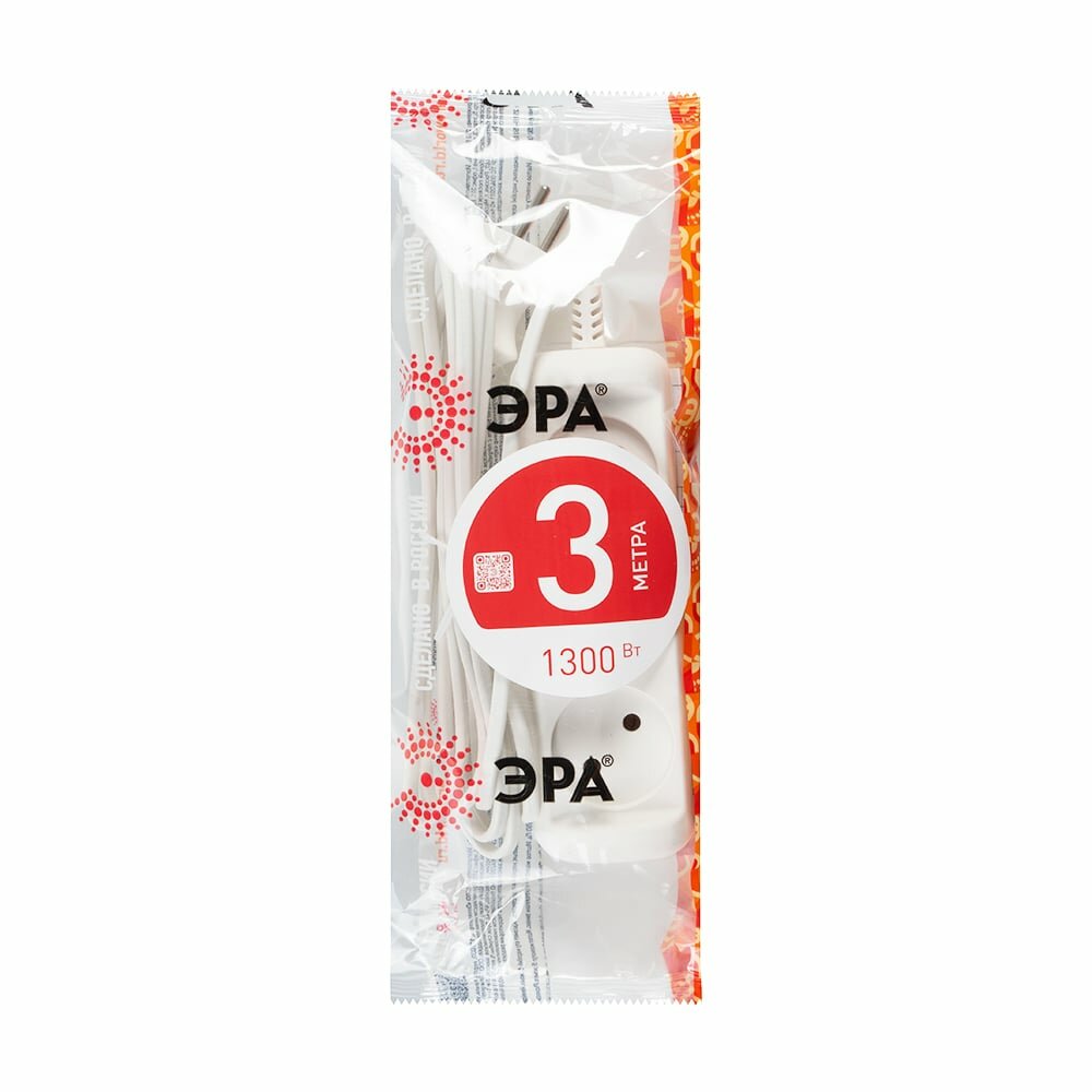 Удлинитель Эра 3 розетки 3 м ШВВП 2х0,75 мм2 6 А 1,3 кВт белый (Б0035748)