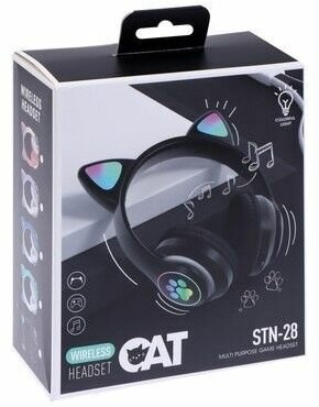 Беспроводные наушники "Кошачьи ушки", светящиеся, CAT STN-28 (черные)