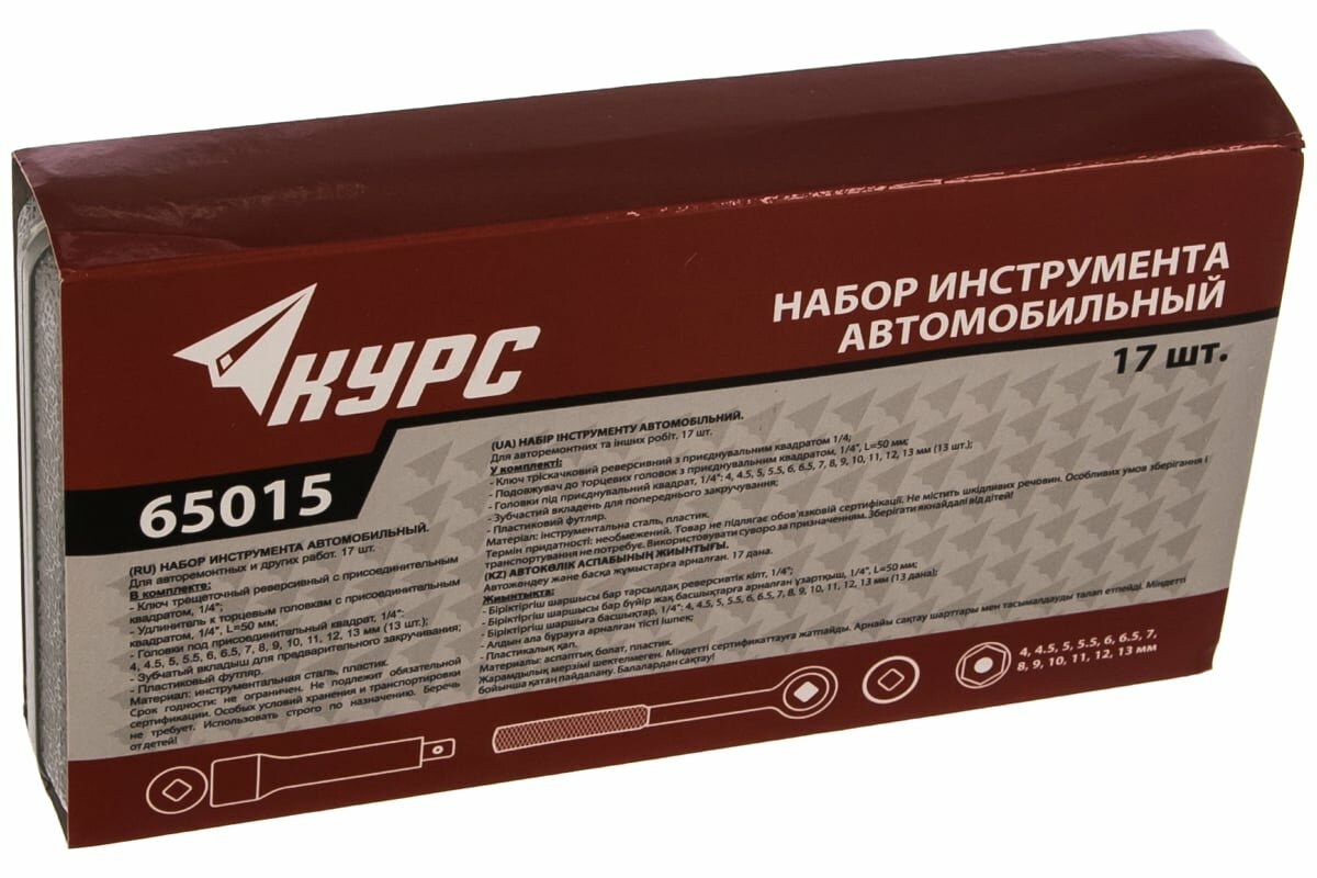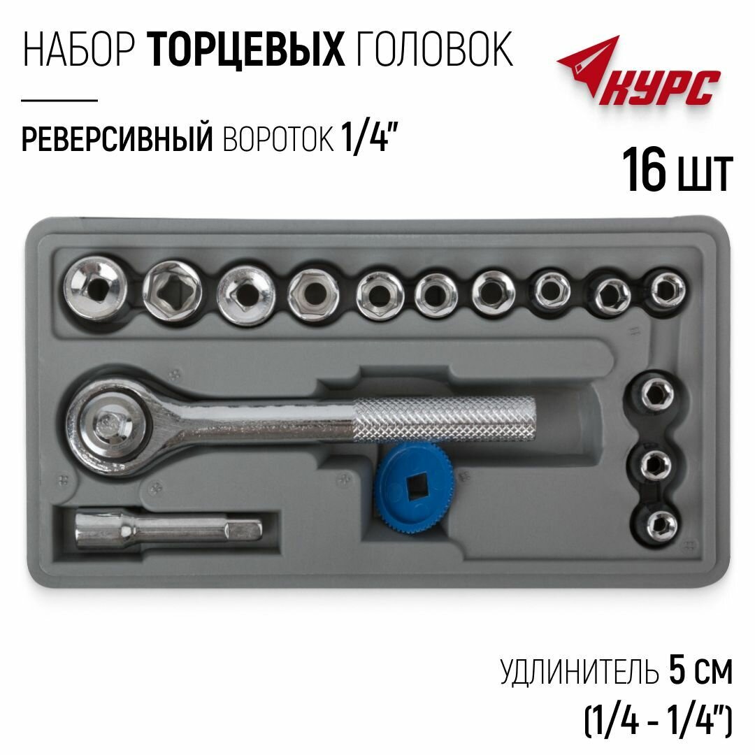 Набор торцевых головок 17 шт. 1/4" KУРС 65015