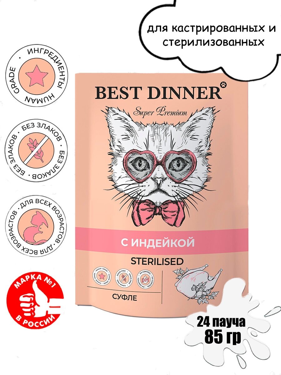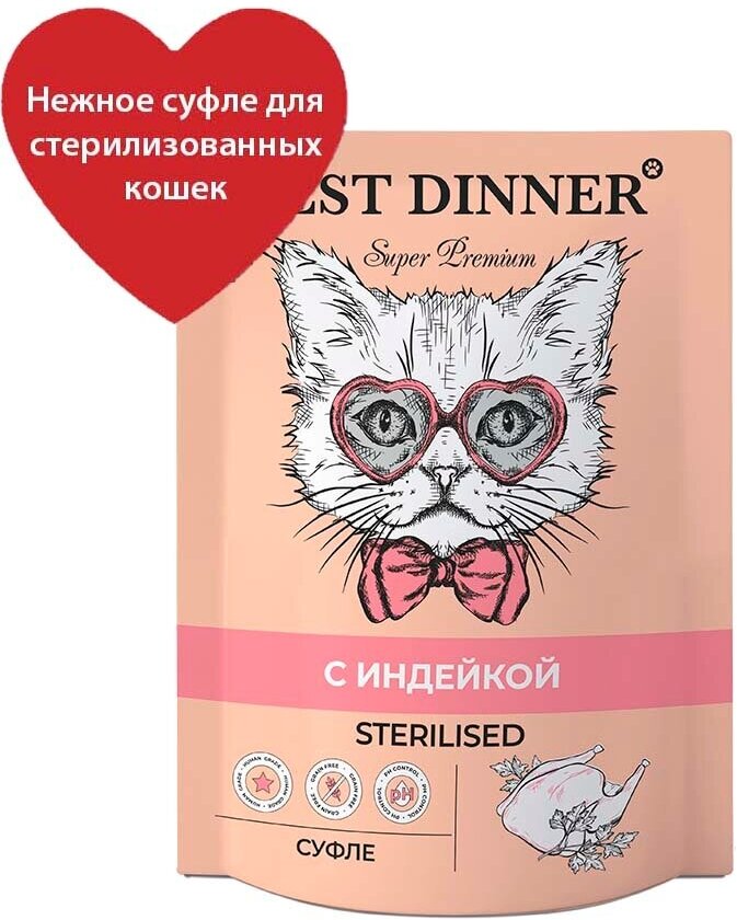 Влажный корм для кошек Best Dinner Бест Диннер Паучи Мясные деликатесы Sterilised /Суфле С Индейкой/ 85 г х 24 шт.