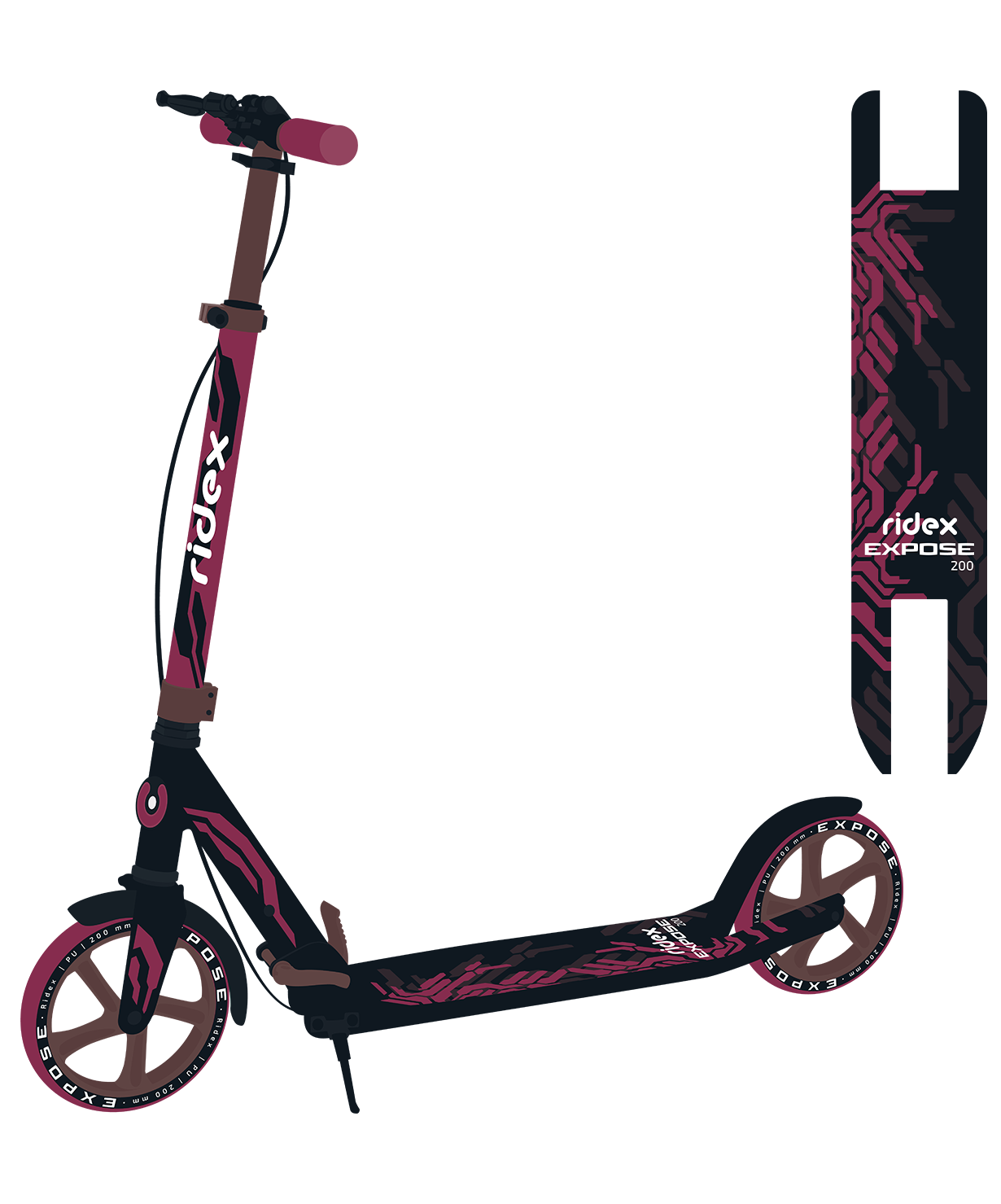 Самокат RIDEX Expose 2022 (самокат RIDEX Expose 2022 бордовый/черный 200 мм)