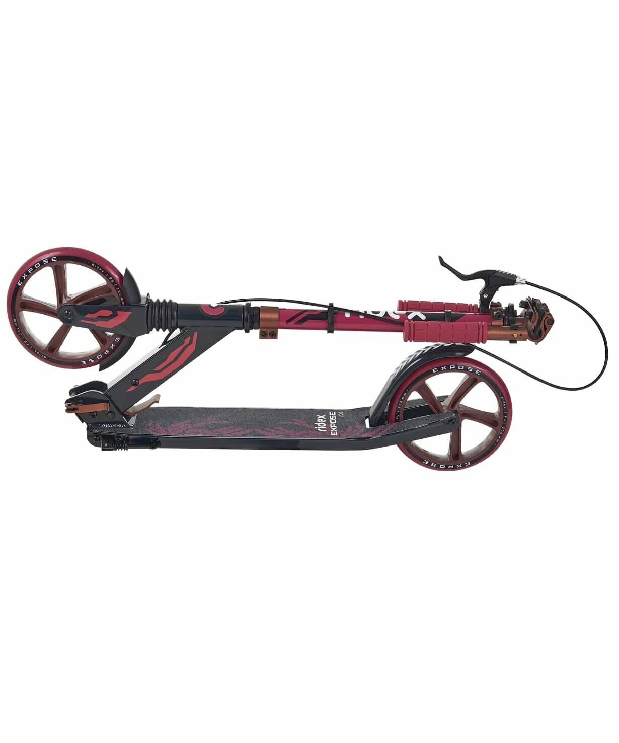 Самокат 2-х колесный RIDEX Expose 200 мм, колодочный тормоз, бордовый/черный
