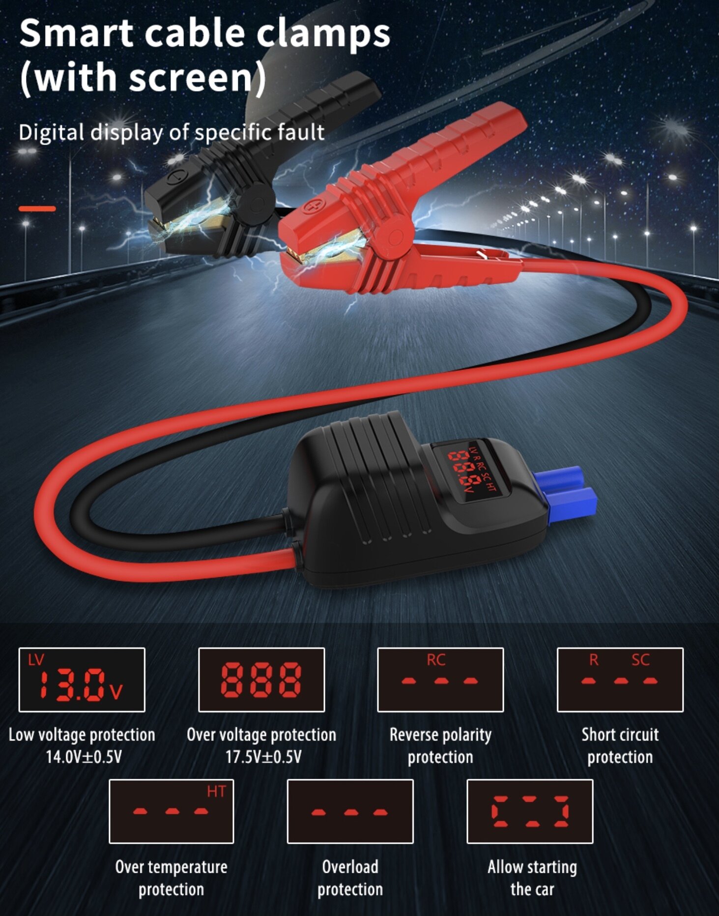 | Дополнительная информация | Емкость аккумулятора: 8000 мАч Пиковый ток: 1000A Бензин: 4,0 л Дизель:2,5 л 1. Установка четырех высококлассных батарей 2. Вход: 5 В/3 А Выход: 5 В/2,4 А 3. ЖК-светильник с дисплеем питания; 4. Светодиодный светильник, SOS, pos-функции; 5. Защита от короткого замыкания, защита от перегрузки по току; Интегральная плата, включая программное обеспечение и аппаратную защиту. |