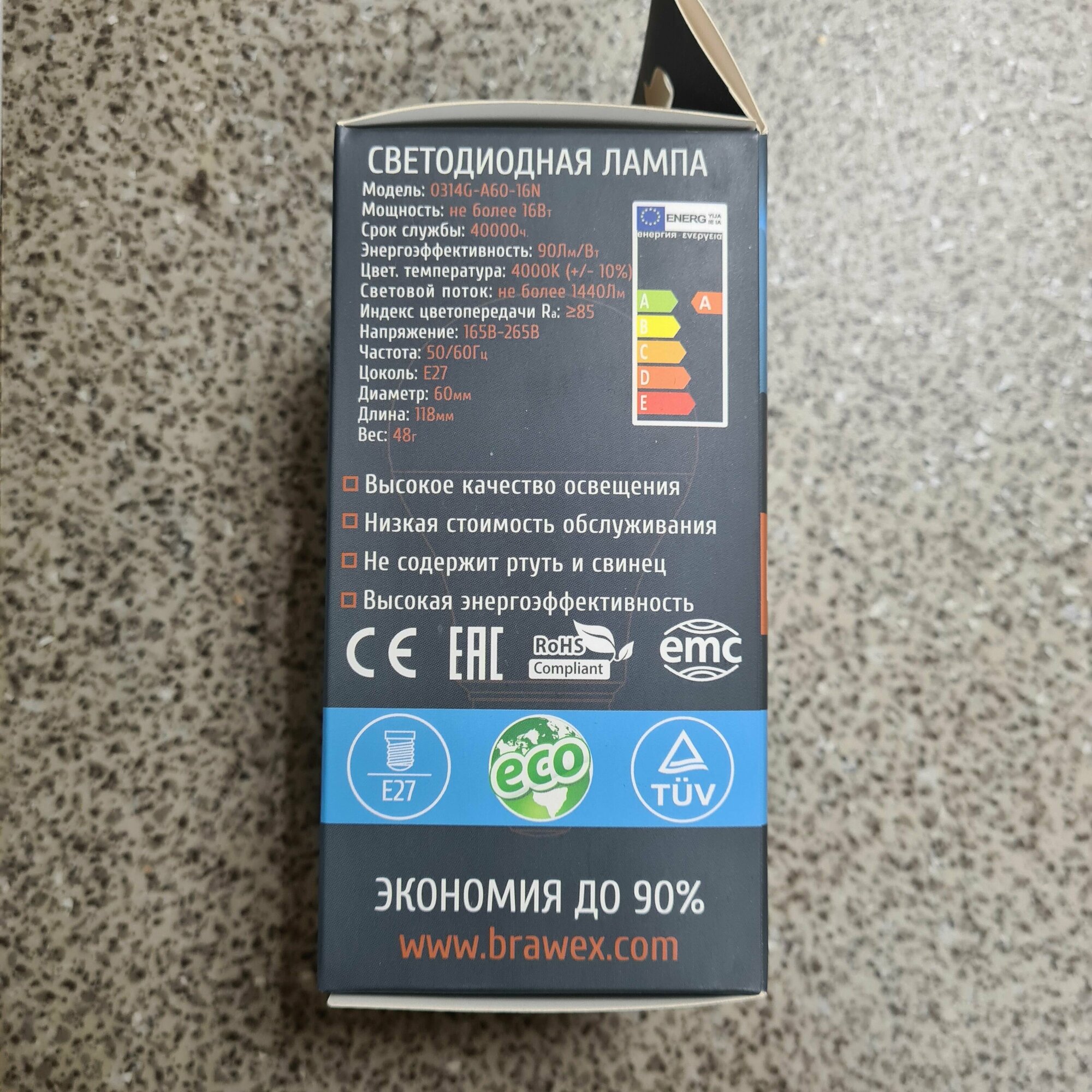 Лампа Brawex светодиодная 0314G-A60-16N интересное: