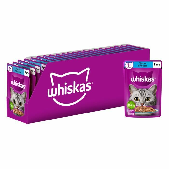 Купить Корм влажный Whiskas полнорационный для взрослых кошек, рагу с треской и лососем, 28шт х 75г
