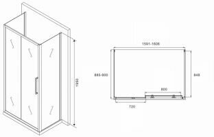 Душевой уголок Abber Schwarzer Diamant 1600х900 мм (габариты площадки) AG30160H-S90-S90