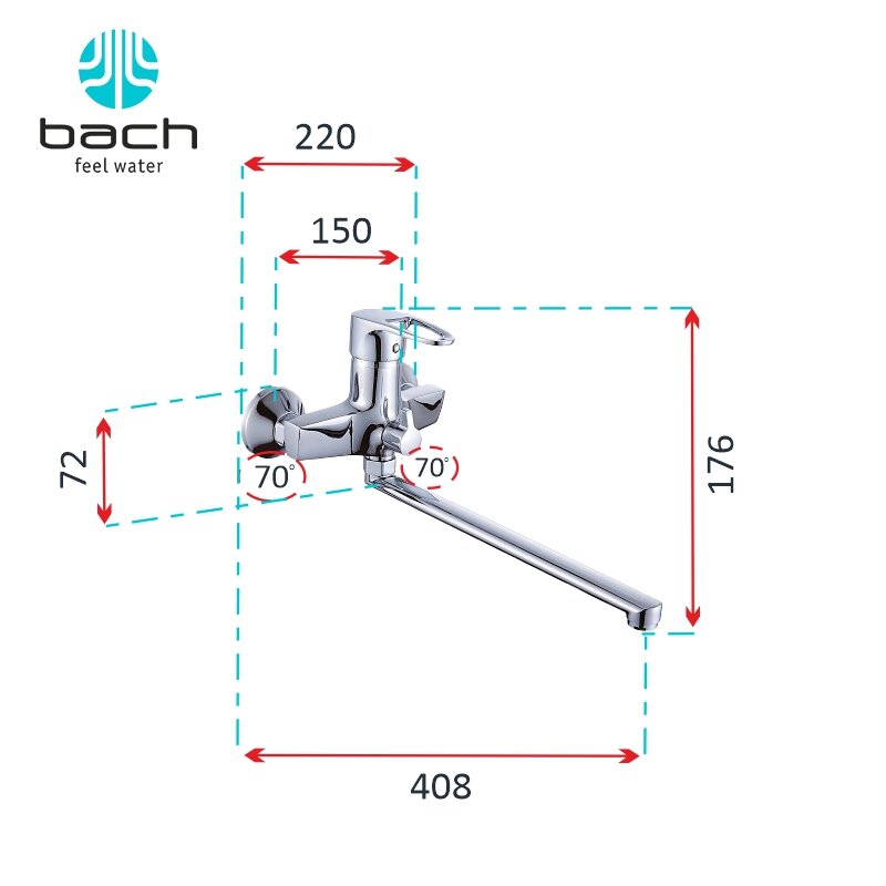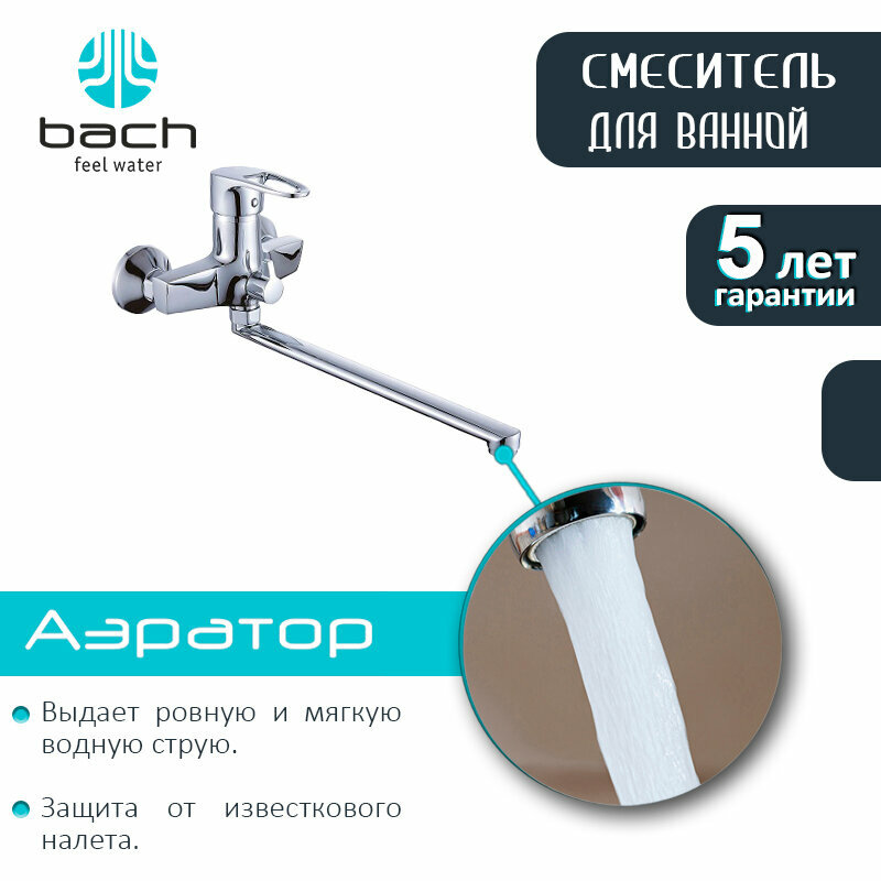 Bach / Смеситель для ванны Поворотный излив Лейка душевая 1-режимная Код 12060 интересное: