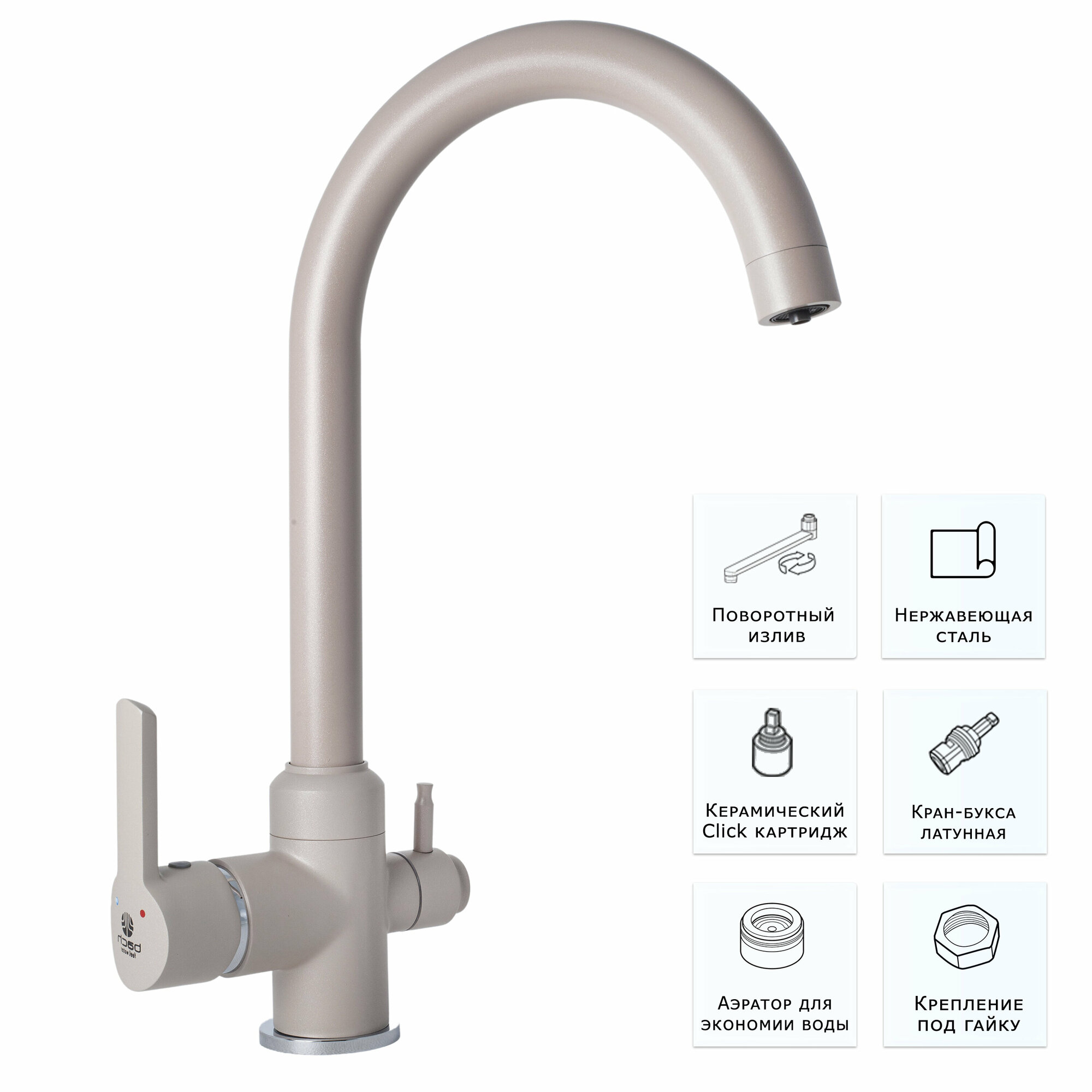 СохранитьBach / Смеситель для кухни раковины с фильтром для питьевой воды кран кухонный высокий цвет бежевый материал латунь / Код 12243 интересное: