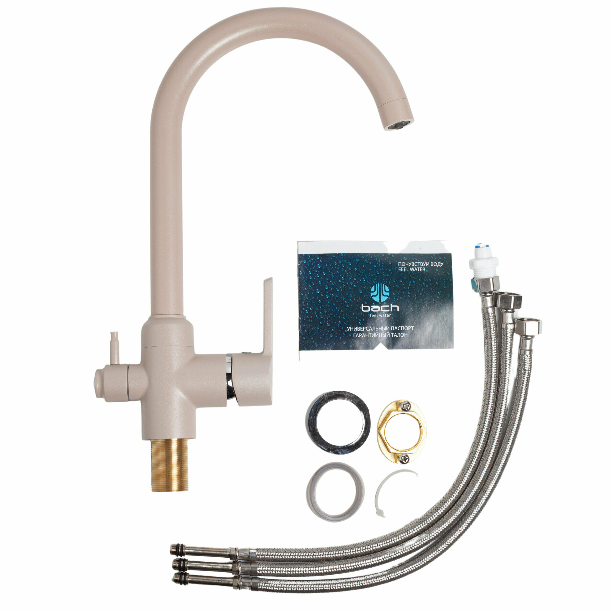 Купить Bach / Смеситель для кухни раковины с фильтром для питьевой воды кран кухонный высокий цвет бежевый материал латунь / Код 12243