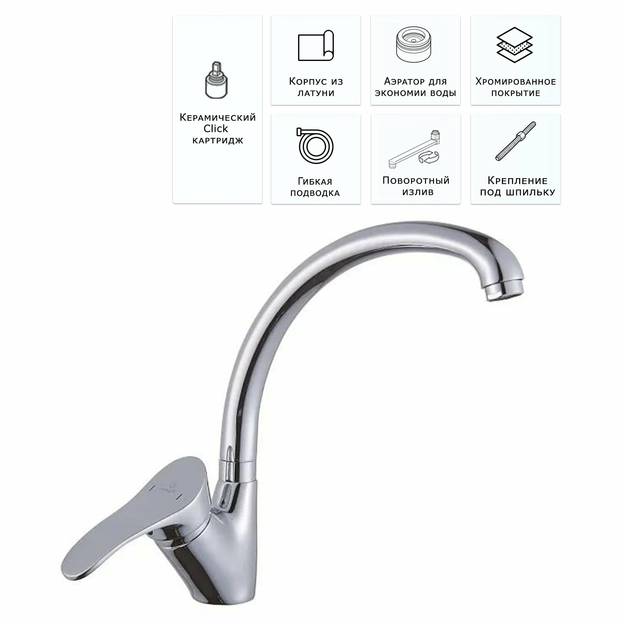 Купить Bach / Смеситель для кухни раковины кран кухонный высокий / Код 12040