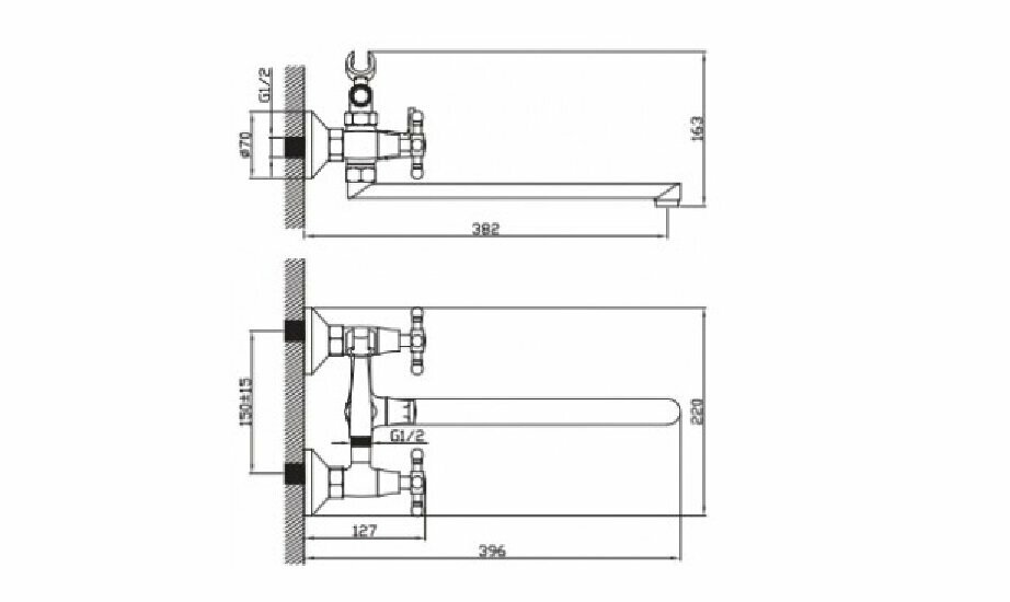 | Особенности | S-образные эксцентрики / держатель душевой лейки / поворотный излив |