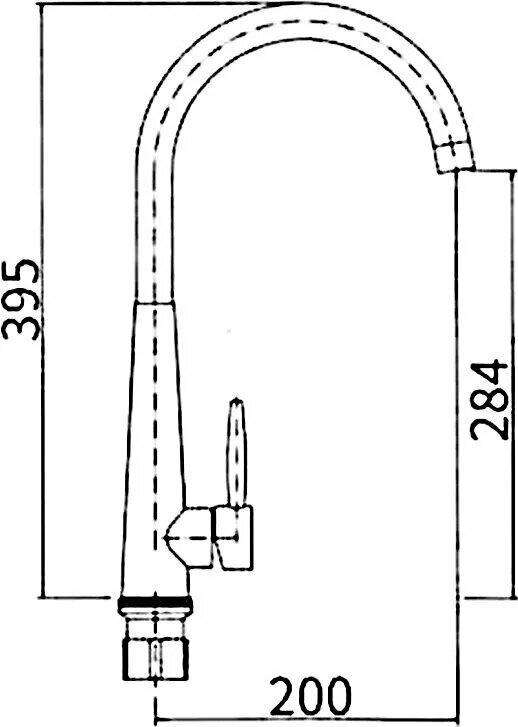 Смеситель для кухни, H=395 мм,сатин, сталь SUS304