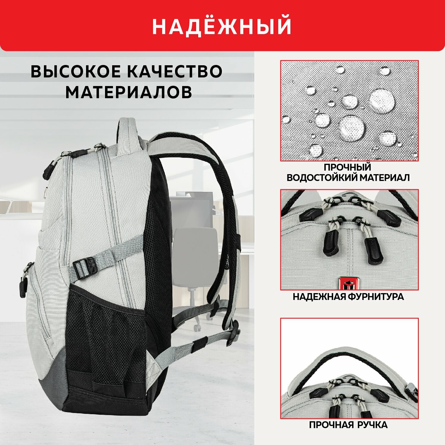 СохранитьGERMANIUM Рюкзак S-07 уплотненная спинка, облегчённый, светло-серый, 46х32х15 см, 226954 интересное: