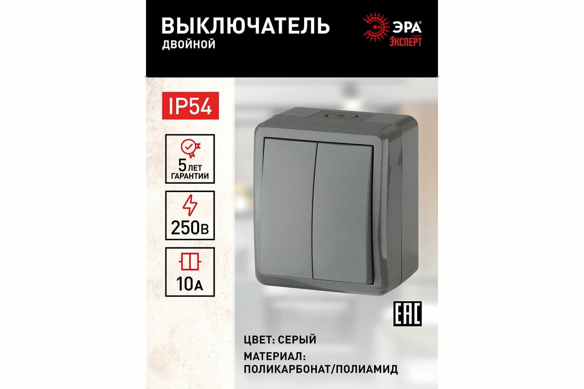 Выключатель 1кл открытой установки IP54 серый Эра Эксперт (комплект 2 шт)