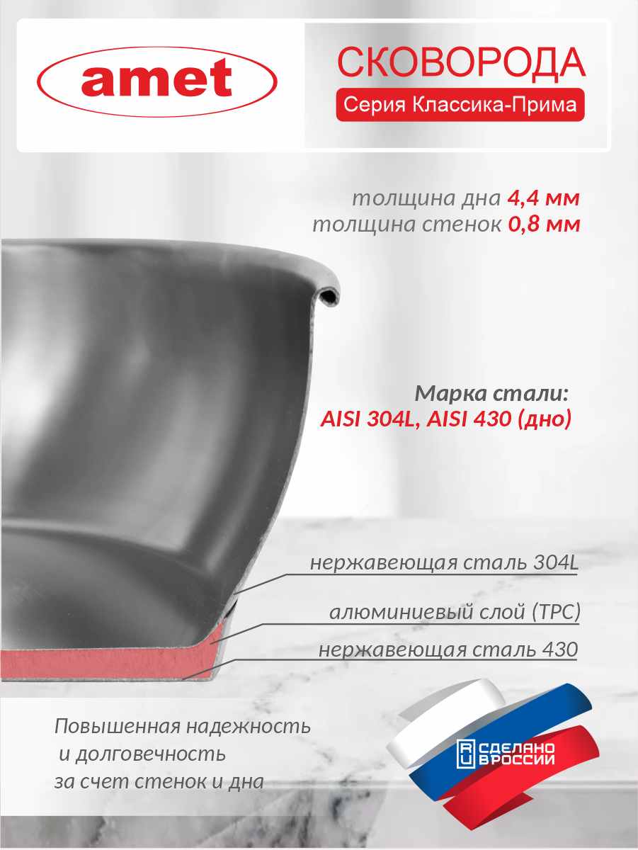 Сковорода «Классика-Прима» 1,5 л, Ø220 мм с ТРС, с длинной и короткой ручками интересное:
