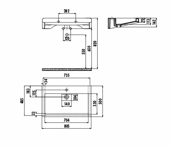 | Расположение отверстия под смеситель | в центре |
