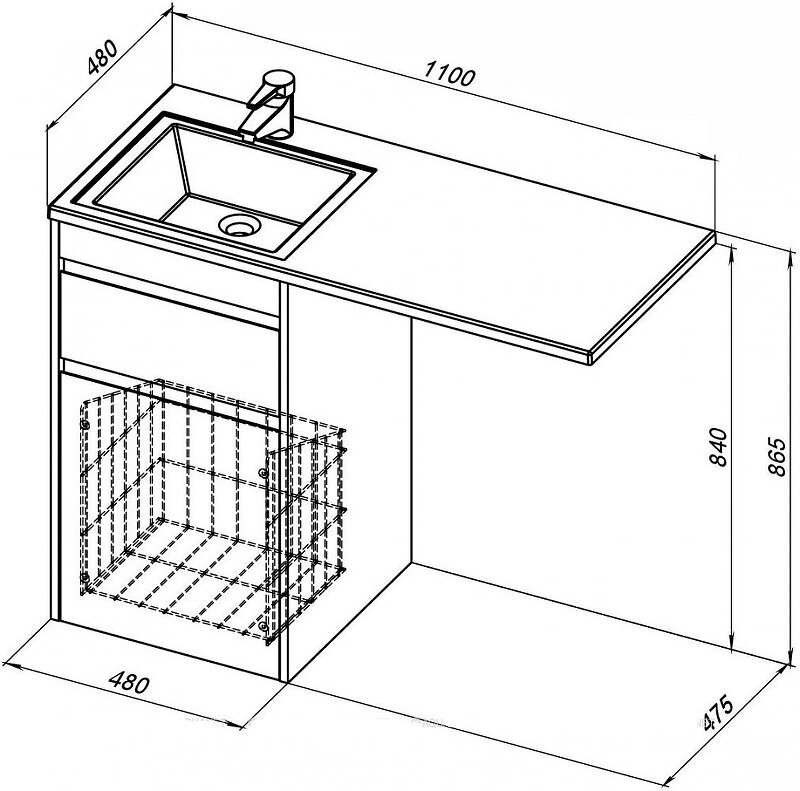 Тумба с раковиной для ванной Кристалл 50 белая.