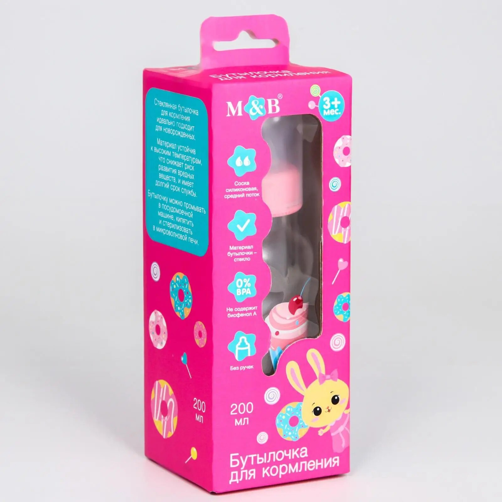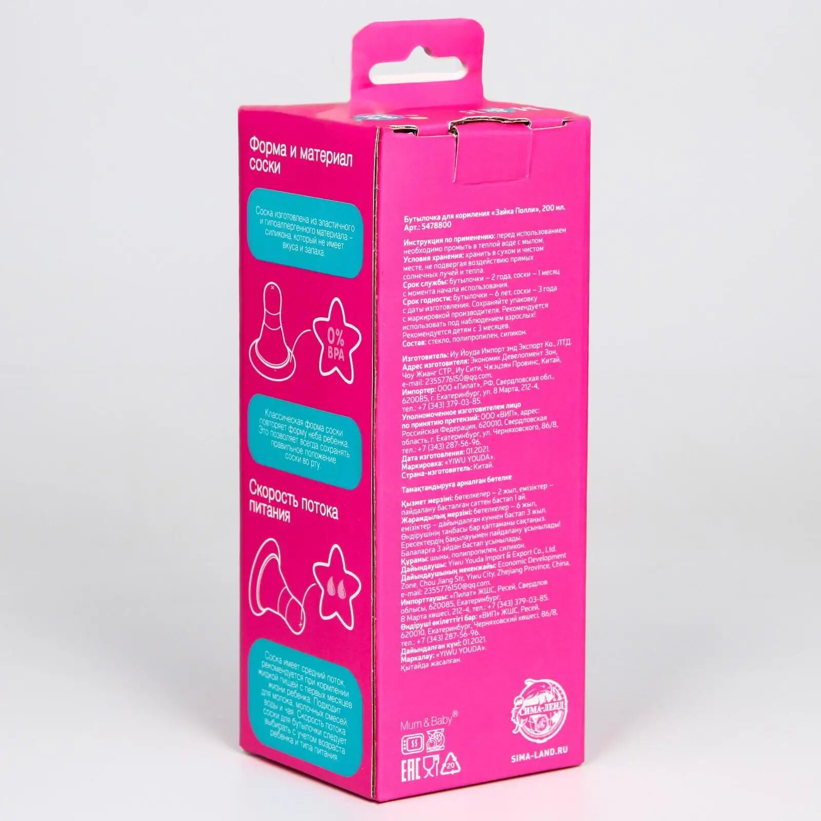 Mum&Baby Бутылочка для кормления стекло, 200 мл, «Зайка Полли», стандартное горло, срдний поток
