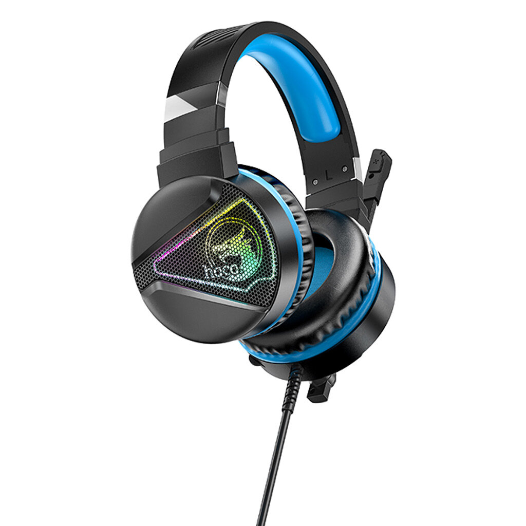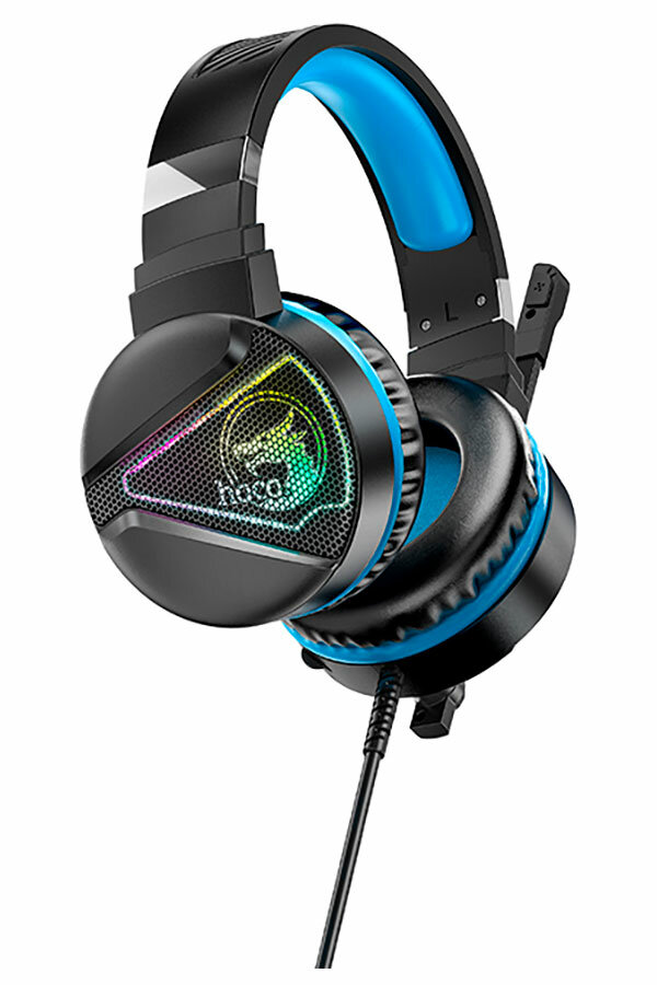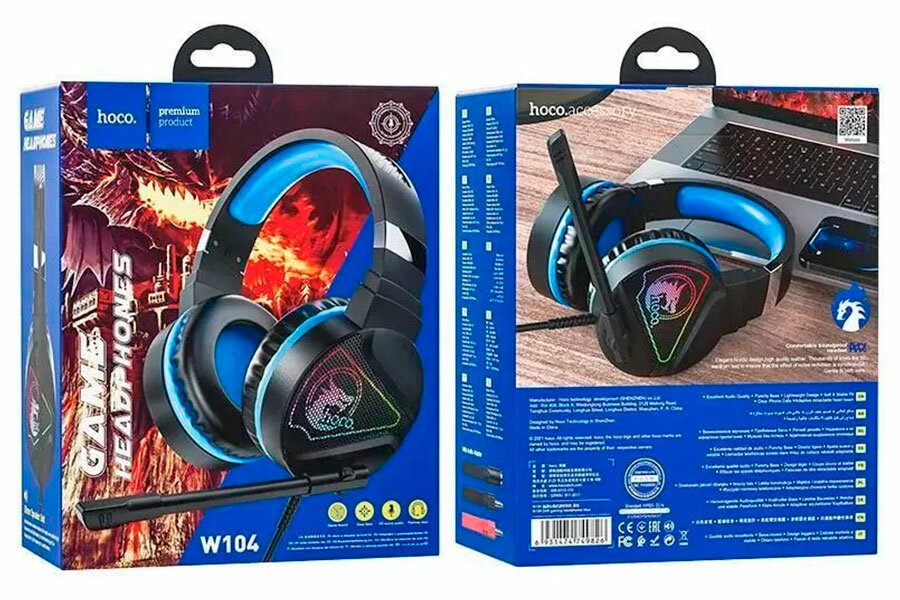 Проводные наушники W104, HOCO, игровые с микрофоном, черные с синим