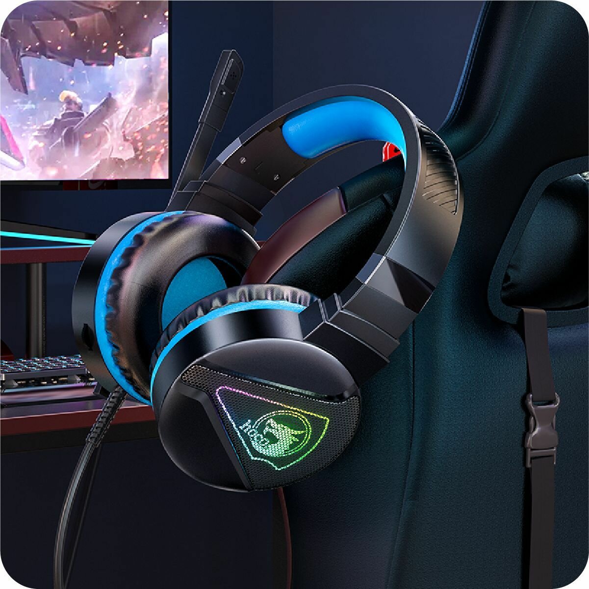 Наушники HOCO W104, Drift gaming, пластик, подсветка, микрофон, AUX, цвет: синий
